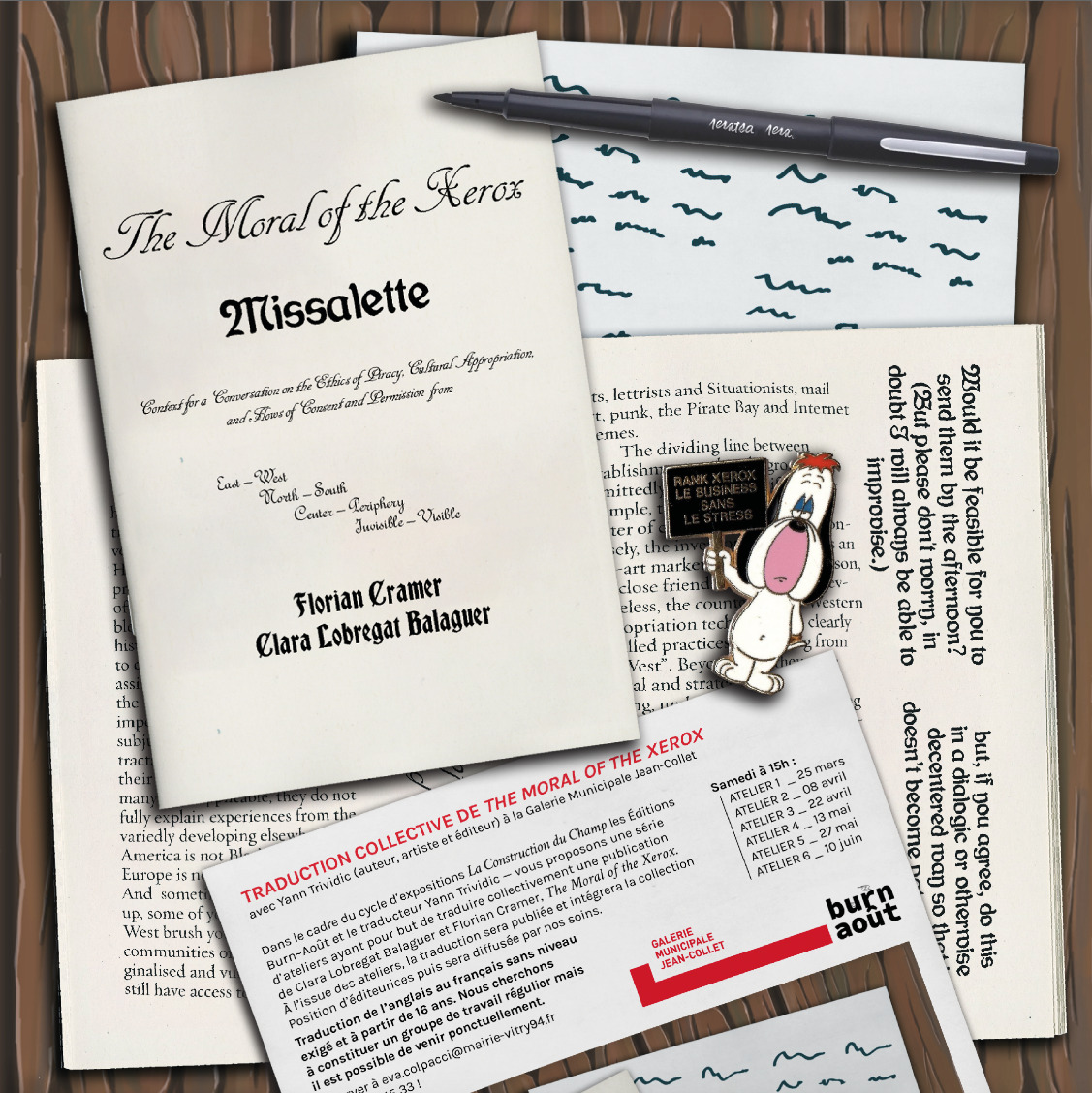 On organise avec Yann Trividic un cycle de six ateliers de traduction à la Galerie municipale Jean-Collet à Vitry dans le cadre de l’exposition La Construction du champ #5. Le texte choisi est The Moral of the Xerox de Clara Lobregat Balaguer et Florian Cramer. À l’issue des ateliers, la traduction intégrerà la collection Position d’éditeurices et sera publiée. Pour ces ateliers, on s’est dit qu’on allait essayer de repenser la manière dont on édite et traduit collectivement des textes. Cette réflexion passe par l’invention de nouveaux outils… Et ces moments seront aussi là pour tester le programme qu’on développe sur-mesure pour l’occasion. Tout est opensource et lowtech. Tout est accessible depuis le navigateur, sur téléphone comme sur ordi, du contenu à la forme.