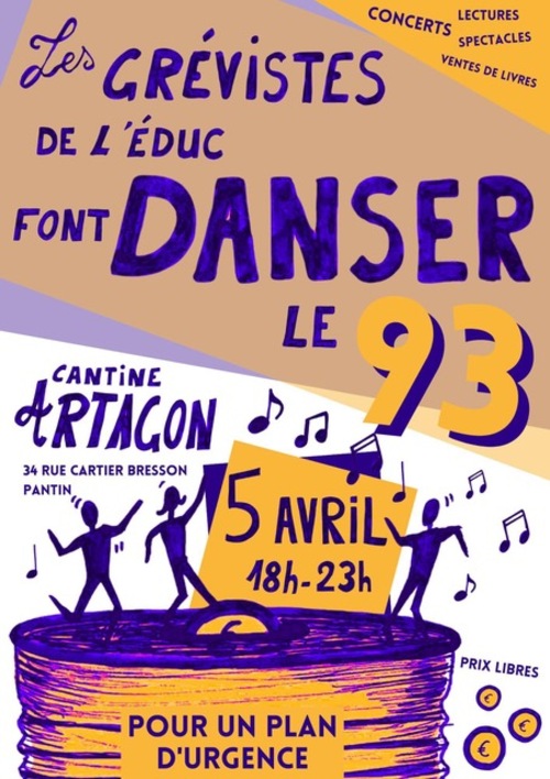 Le vendredi 05 avril 2024, on était à Artagon (Pantin) pour soirée : « Les grévistes de l’Éduc font danser le 9-3 ».