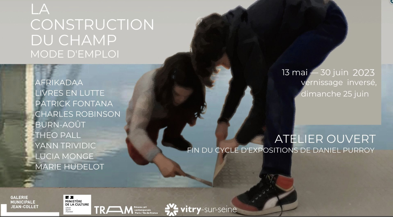 La Construction du Champ _ Mode d’Emploi est conçu comme un atelier ouvert. Il clôt le cycle d’exposition s initié en 2020 par Daniel Purroy, en tant que directeur artistique de la Galerie Municipale Jean-Collet. Ce cycle d’exposition s a été conçu comme le développement d’un système conceptuel dialectique qui génère des nouvelles énergies pour les inscrire sur le territoire. La ville de Vitry-sur-Seine vit aujourd’hui une importante mutation urbaine au sein de laquelle l’art peut avoir un rôle fondamental. La suite des exposition s #1 Le Chantier, #2 La Matière du Monde, #3 Cosmogonías, #4 Tout est là, mais où sommes-nous ? et #5 L’Atelier de l’Eau, a permis la création d’un nouveau dispositif culturel hors des murs de la galerie, au cœur du quartier industriel et sur les bords de Seine : L’ATELIER DES ARDOINES. Aujourd’hui, La Construction du Champ #5 Mode d’emploi est conçu comme un outil de travail qui, en revenant sur les exposition s qui l’ont précédées et en créant de nouvelles rencontres, continue son développement. C’est une exposition en train de se fair. Selon une temporalité inversée, cet atelier ouvert se clôt par un moment de rencontre festif, considéré comme un vernissage. Cet événement - inaugural et pourtant final - permet l’application poétique et symbolique des réflexions engendrées au fil du cycle d’exposition s sur son territoire d’action. Cette fin de cycle est pensée comme l’amorce d’un développement à l’échelle de la ville, venant particulièrement s’incarner dans l’Atelier des Ardoines et sur les bords de la Seine.