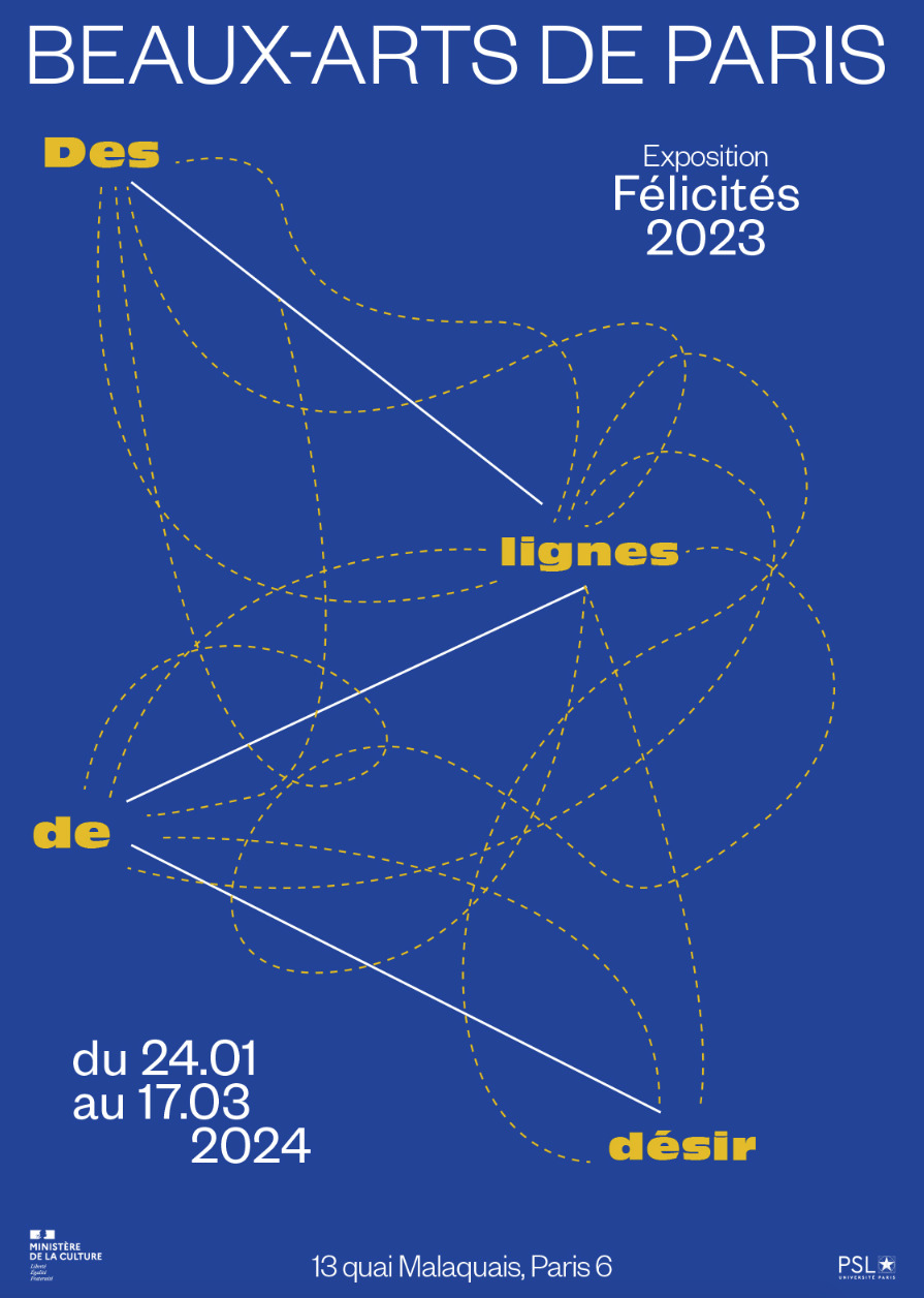 Du 24 janvier 2024 au 17 mars 2024, on était aux Beaux-arts de Paris (Paris) pour l’ exposition collective dans le cadre des Félicités des Beaux-Arts de Paris : Des lignes de désir.