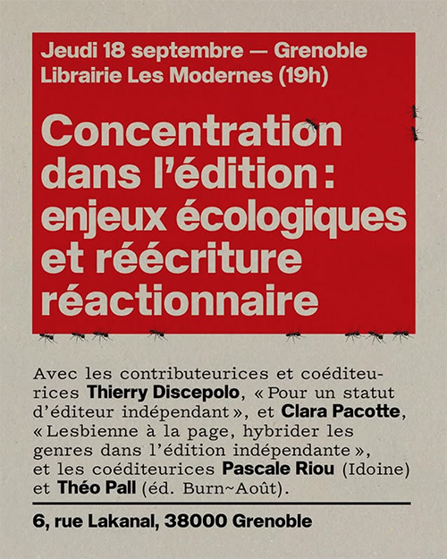Le jeudi 18 septembre 2025, on était à la Librairie Les Modernes (Grenoble) pour lancement de Déborder Bolloré : « Concentration dans l’édition : enjeux écologiques et réécriture réactionnaire ».