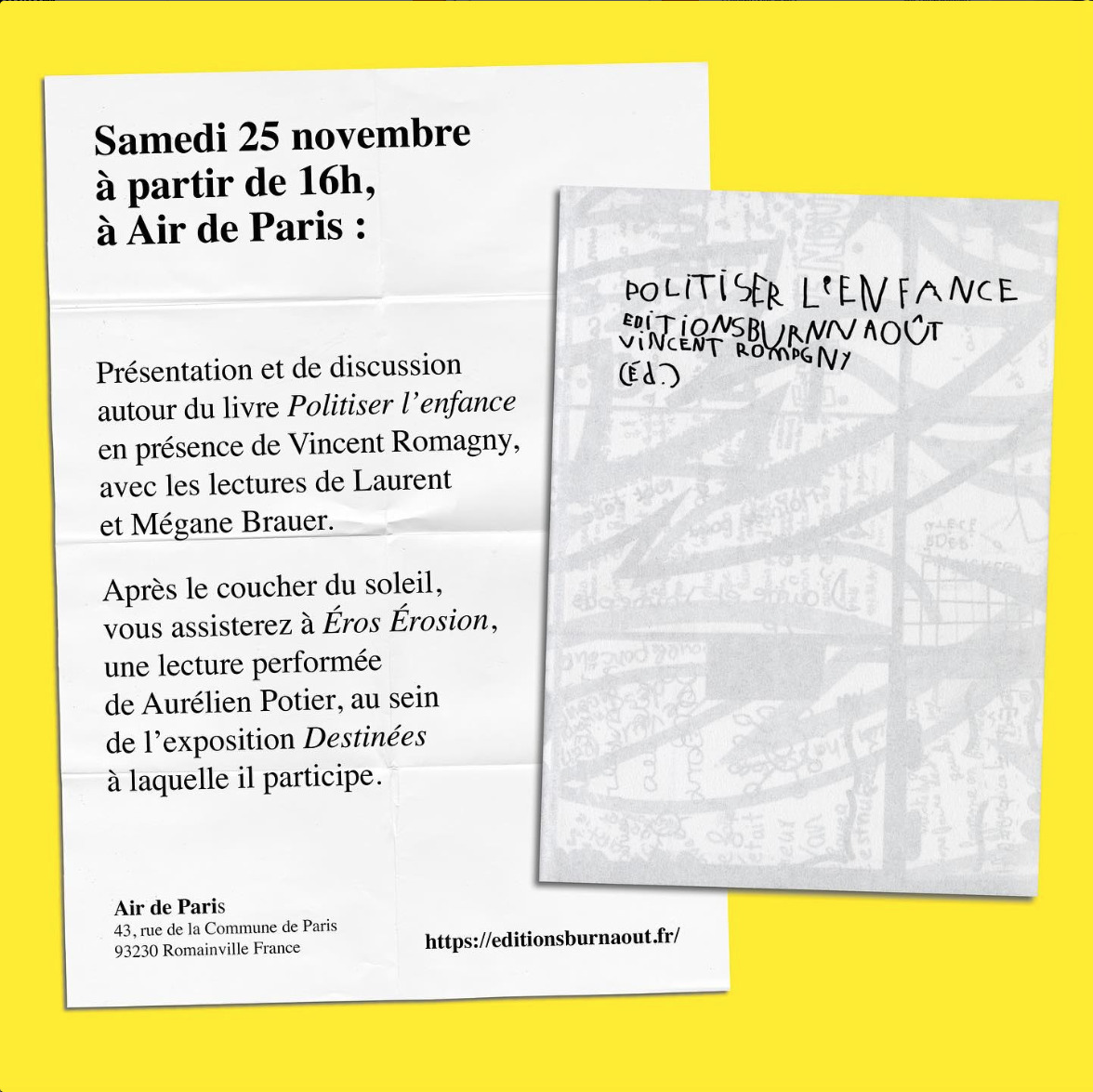 Le lundi 25 décembre 2023, on était à la galerie Air de Paris (Romainville) pour la présentation de Politiser l’enfance.