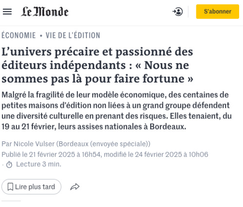 Malgré la fragilité de leur modèle économique, des centaines de petites maisons d’édition non liées à un grand groupe défendent une diversité culturelle en prenant des risques. Elles tenaient, du 19 au 21 février, leurs assises nationales à Bordeaux.