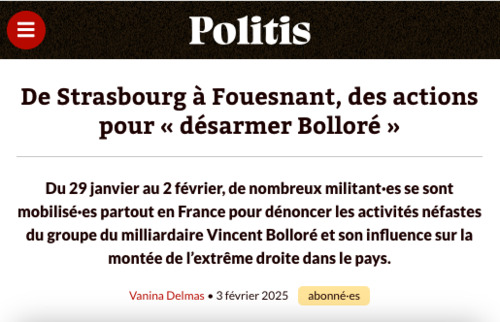 Du 29 janvier au 2 février, de nombreux militant·es se sont mobilisé·es partout en France pour dénoncer les activités néfastes du groupe du milliardaire Vincent Bolloré et son influence sur la montée de l’extrême droite dans le pays.