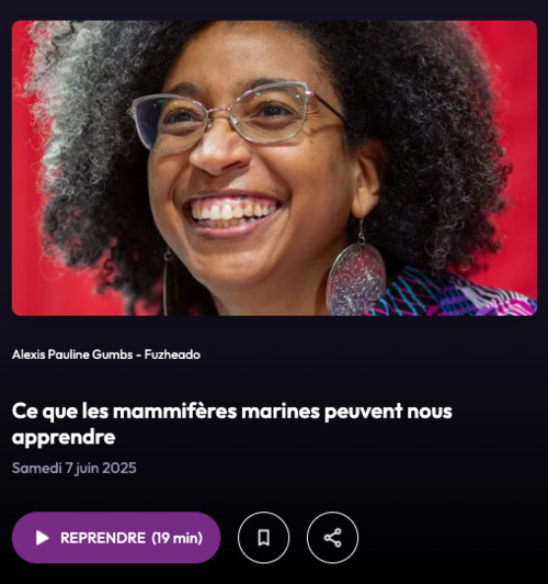 Que nous apprennent les mammifères marines ? Dans son essai à la fois politique, méditatif et poétique, Alexis Pauline Gumbs réfléchit aux enseignements "subversifs et transformateurs" auprès des mammifères marines. Elle est l’invitée "culture" de Nicolas Herbeaux.